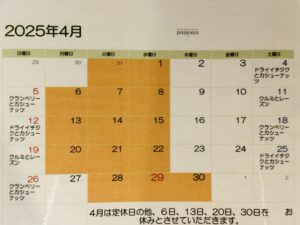 4月は定休日の他、6日、13日、20日、30日をお休みさせていただきます。